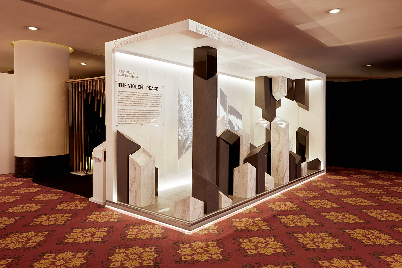 This year theme was One Nation which display various design installation, furniture and art that enhance uniqueness in each and every piece. This exhibition had a thorough and interesting program, from the final of CASA Design Challenge 2018, seminar, talk show, corner of Architectural Project, Cook Design area, Mi Casa area, and Designer Showcase. Designer Showcase was a special zone that present installation or interior design from expert, designer, artist, and architect with particular concept. This year event brought Cosmas D. Gozali, Eva Nasa (TMS Creative), Satya Putra (Larch Studio), Riki Yakub dan Ren Katili (Architect’s Life), Akara Project, Dhanista Dyaksa, and most particularly Glenn Hajadi and Rama Budhisurya, the founders of High Street on this special zone. High Street unique work of the year for Designer’s Showcase was this installation called The Violent Peace.