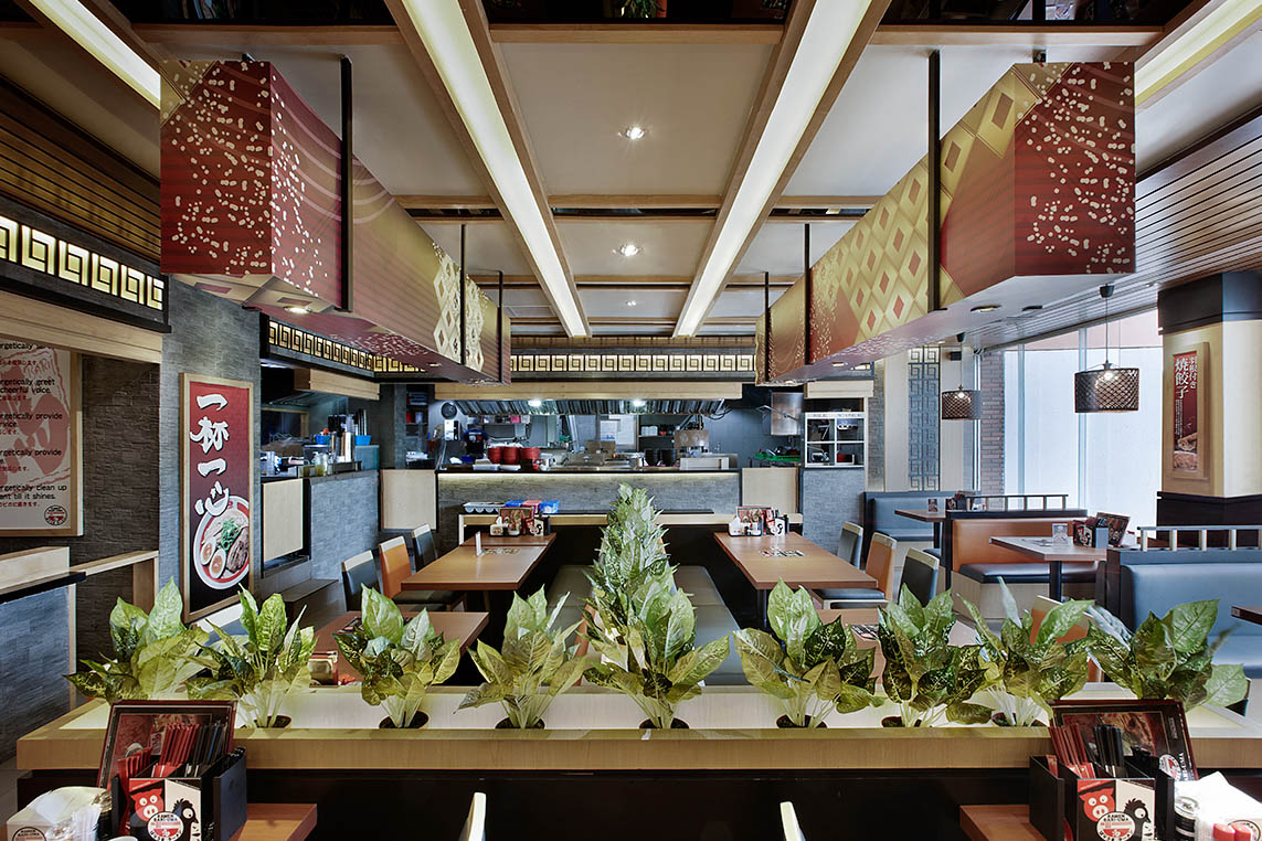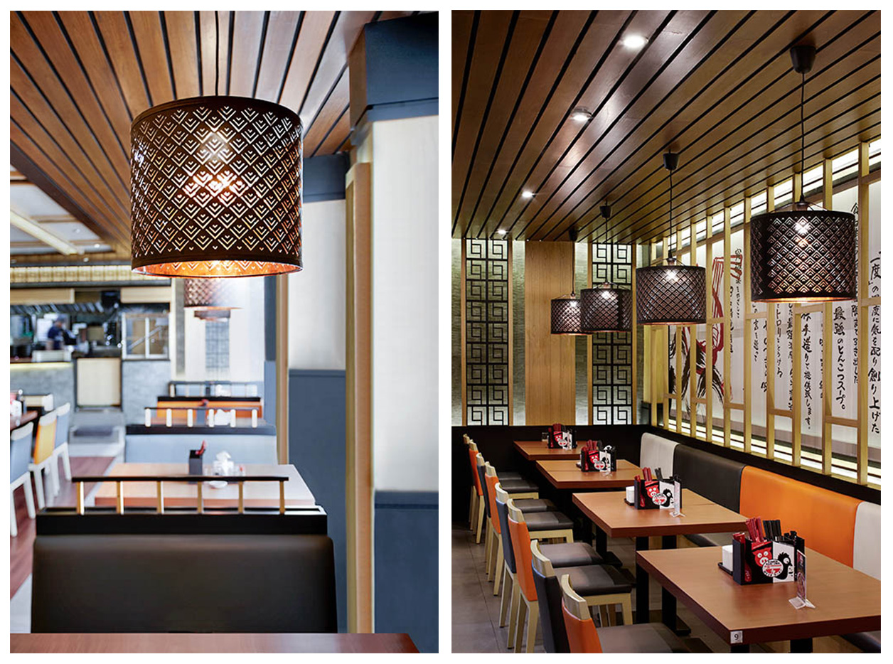 This famous authentic ramen restaurant brand from Hiroshima, Japan is a new addition to the Jakarta food culture. The design team create a restaurant interior design that is inspired by the simplicity and warmth of Japanese culture. Warm wood tones, patterned screen, and bright orange finishes create an environment comfortable for dining with families and friends.
