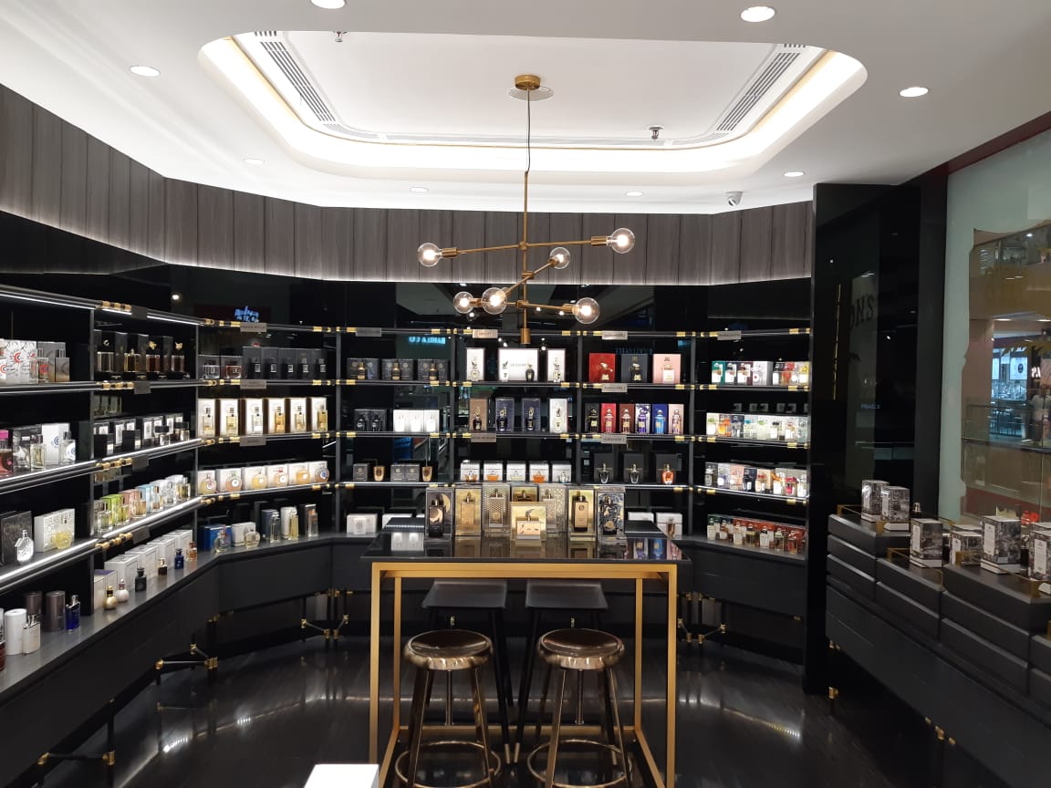 Inviting and welcoming is the right results for this retail with the grand opening and high ceiling. We applied warm colours to support the ambience and represent the exclusive brand. We also used brass material in some elements to give an exclusive accent. Through the grey mirror in the wall, treatment to give a large impression, elegant, and exclusive.
