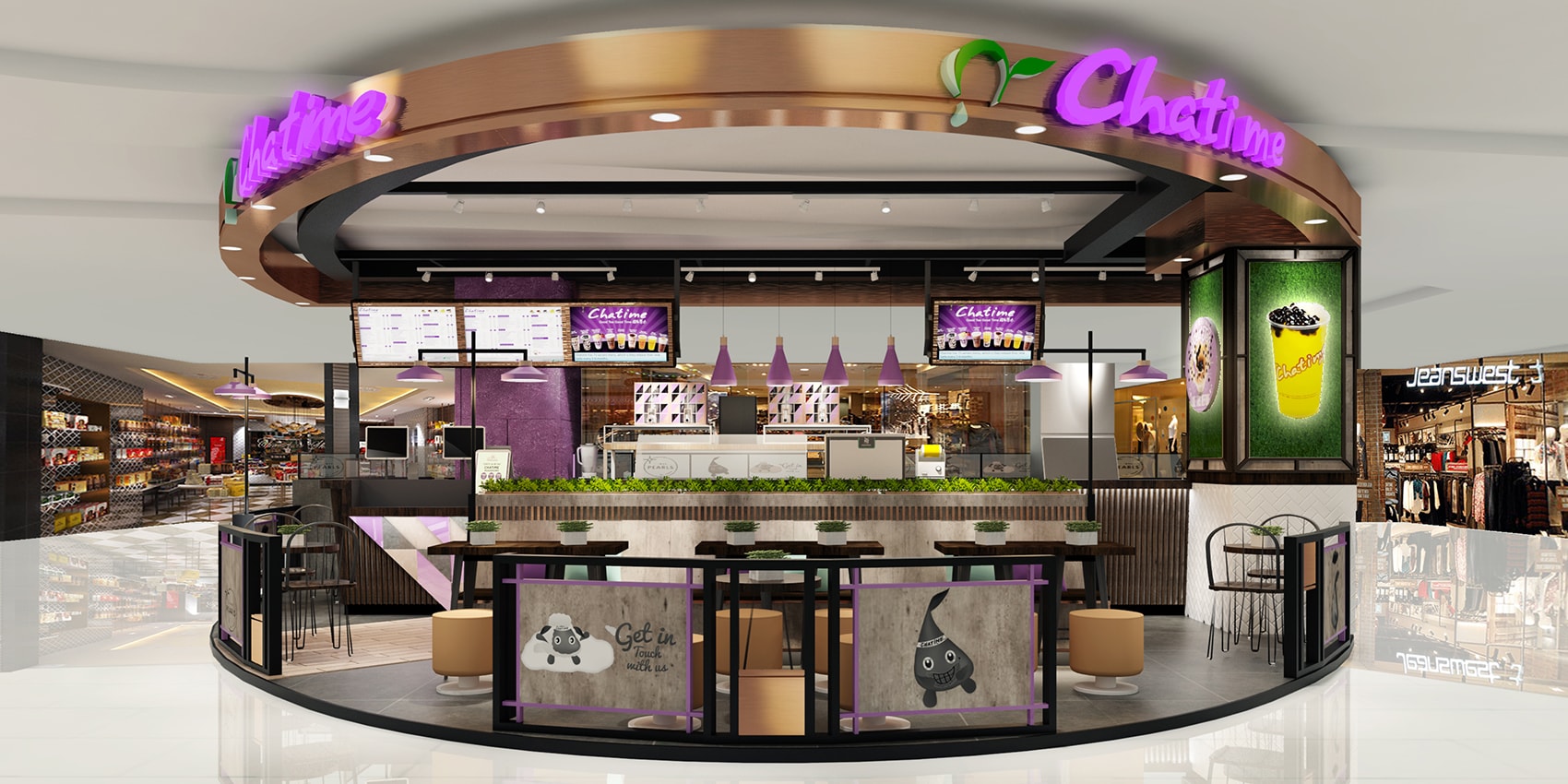 HighStreetStudio was comissioned as the Interior Consultant for Chatime outlet at Central Park, Alam Sutera, Tangerang. The new concept is an evolution from the previous grab and go concept. Its layout allows you to relax and spend your free time while enjoying your drinks. Combination of single seating sofa, round coffee table, and a bit of greenery touch to make it more comfortable to sit back and relax for a while.