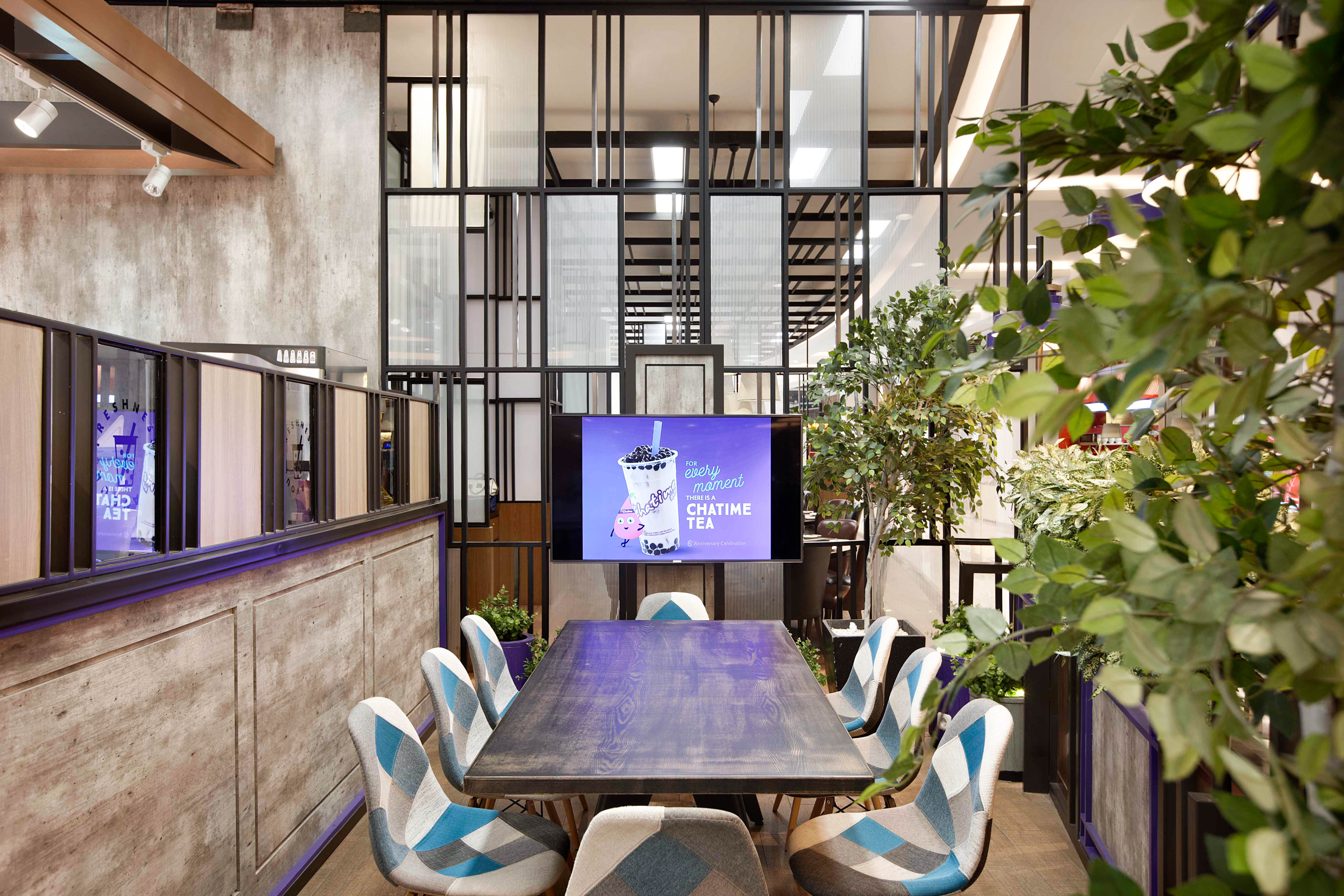HighStreetStudio was comissioned as the Interior Consultant for Chatime new flagship concept at Living World, Alam Sutera, Tangerang. The new concept is an evolution from the previous grab and go concept. Its layout allows you to relax and spend your free time while enjoying your drinks. Combination of single seating sofa, round coffee table, and a bit of greenery touch to make it fit well with mall interior concept. The plants are packed into standing pots that make it a boundary between seating area.