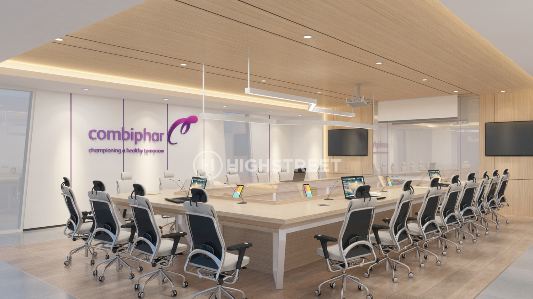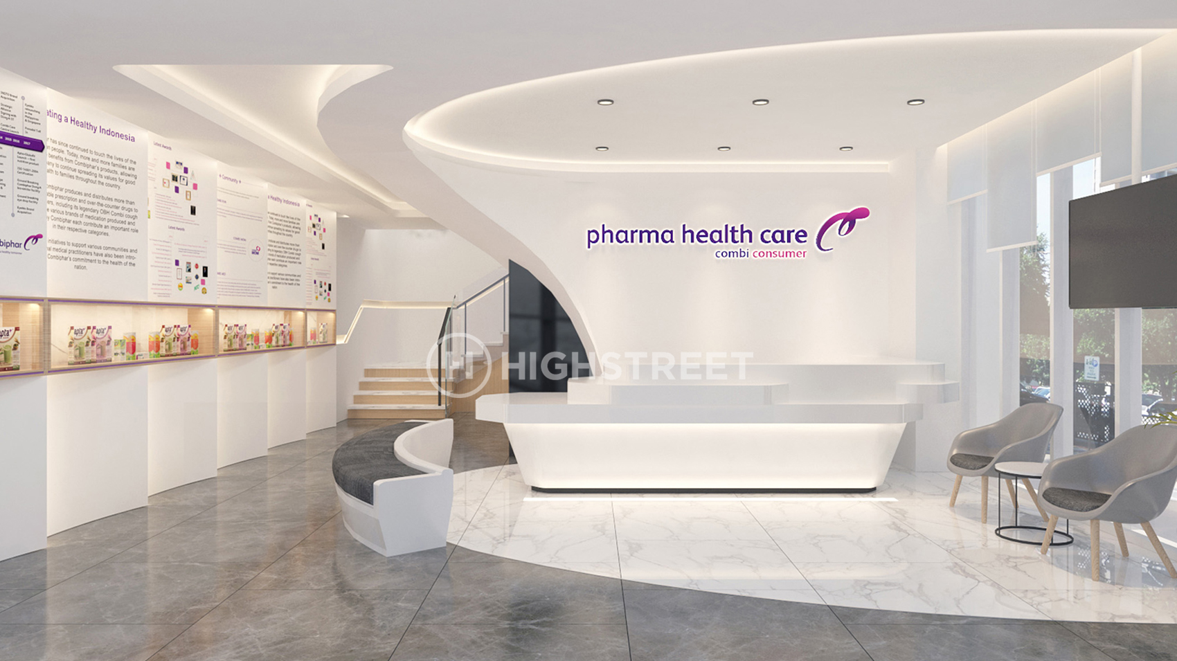 Simple, clean and modern office interior design is the main concept that High Street Studio wants to present. Having lots of experience designing the office design in Jakarta and its surroundings, making High Street Studio to be trusted by a large pharmaceutical company named Combiphar. The purple colour that is part of the company's identity, is used in almost all interior parts.