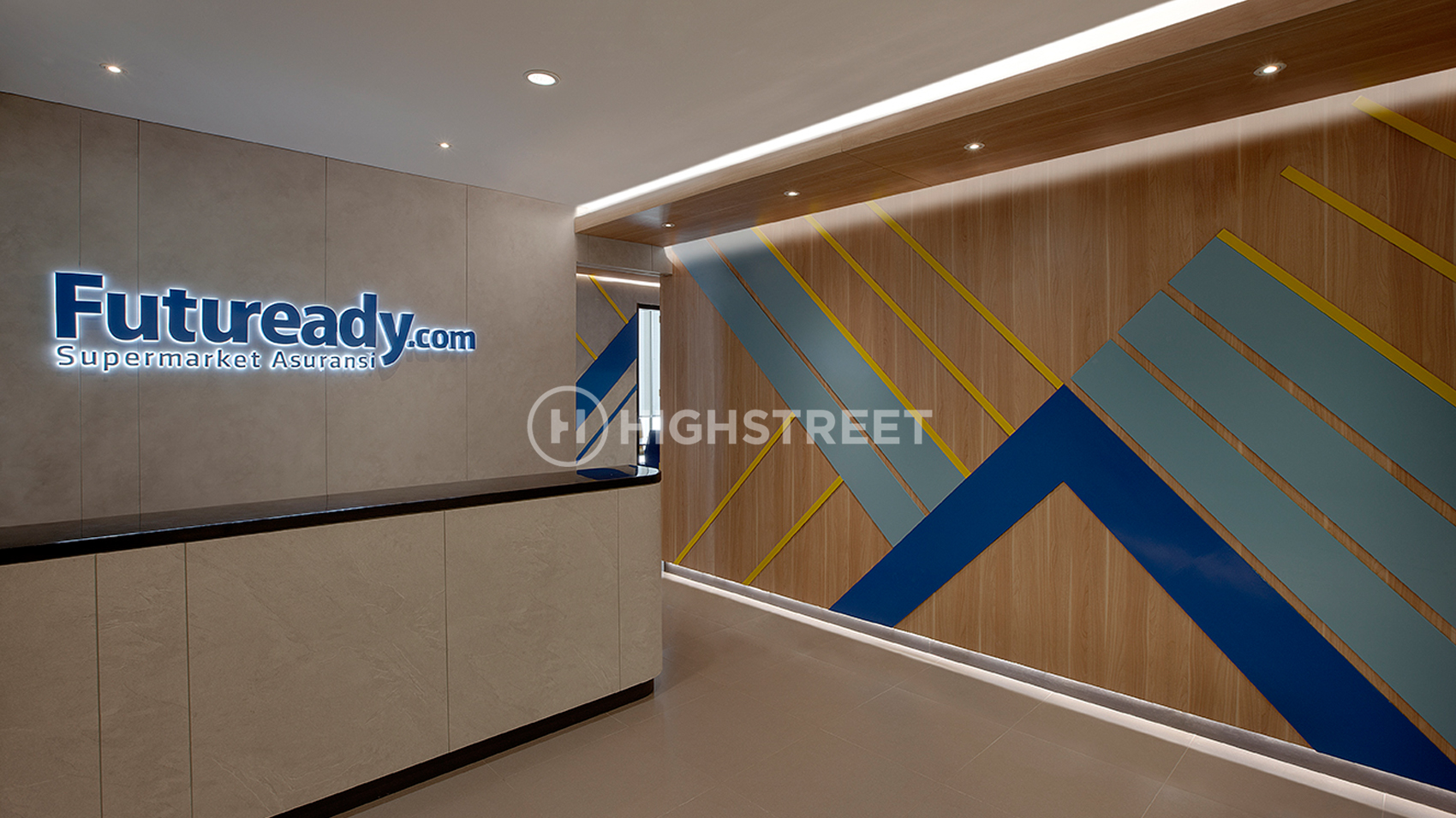 As an insurance broker company, the dynamic display of the office interior design will certainly provide added value. Futuready Indonesia entrusts High Street Studio for the design of their office interior design. The High Street Studio adopted the urban concept, considering the market share that Futuready aims that is the urban society who always dynamic and up-to-date. The urban concept was combined with greenery elements, in order to create the impression of a more living space. The element of greening will certainly inspire workers to be more active and productive.