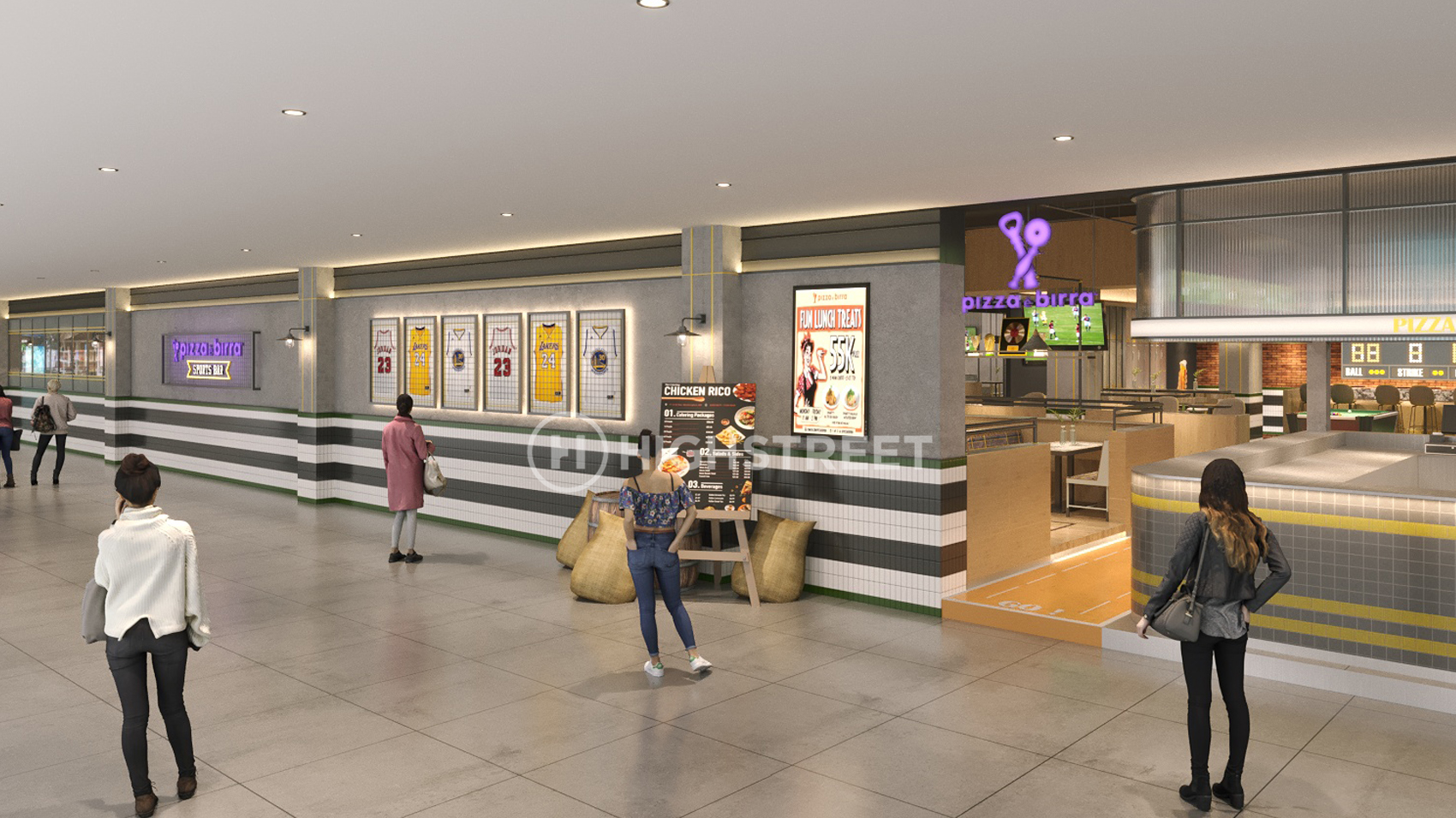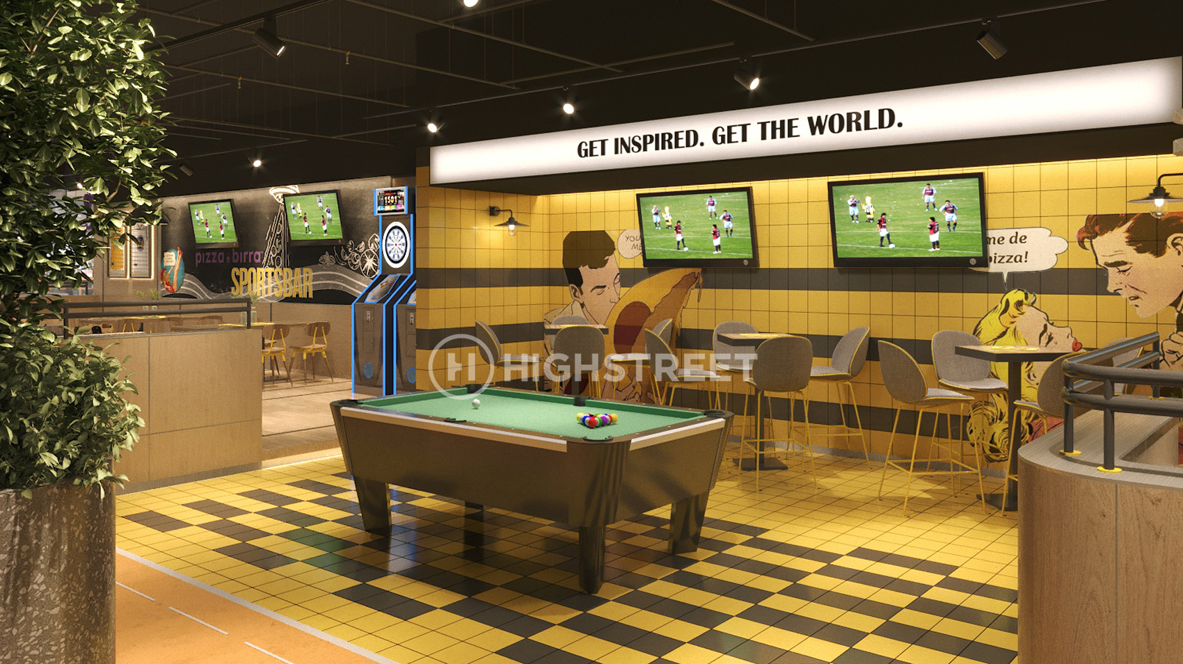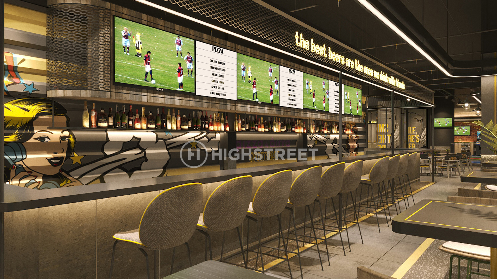 Staying within the main concept as a sports bar, we divided the venue into 2 main areas. The first