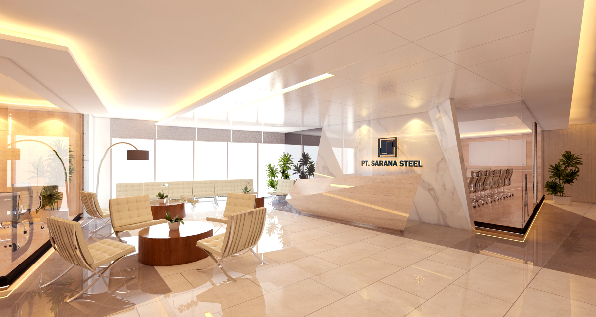 The High Street Studio describes it in a premium and elegant space concept, to represent the company's image and success. Modern interior design is very visible, starting from the lobby area filled with the dominance of white marble material. This space looks sophisticated because of the form of ceiling fields and lighting techniques, and also with the shape of the wall and reception desk in the middle of the room. The waiting room also feels sophisticated because of the slope of the wall on one side and the masculine colors. Meanwhile, in one of the director's room, the interior design looks elegant with a black background wall. To turn on the atmosphere of the room, a wooden panel is chosen as the ceiling cover.