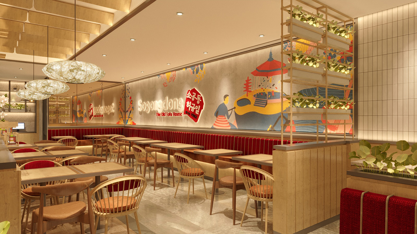 Moreover, Highstreet also made some key points for So Gong Dong PIK’s interior design, lighting is one of them. Soft and flattering lighting is applied to the restaurant to make customers feel comfortable so that they can relax and enjoy their stay in the restaurant. To accentuate the best setting of the room's lighting that suits the time of the day, Highstreet tried to make soft ambient lighting for customers.
