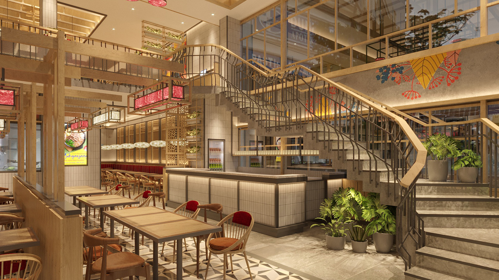 To maximize comfortable atmosphere, Highstreet uses a lot of wood materials for So Gong Dong PIK’s interior design. The wood itself has always been one of the most used materials in architecture and interior design for so many restaurants. Wood is valuable not only because of its sturdiness but also for its versatility. In this matter, Highstreet uses wood to completely transform this 287 squares meter restaurant to be more pleasant and feel like home.
