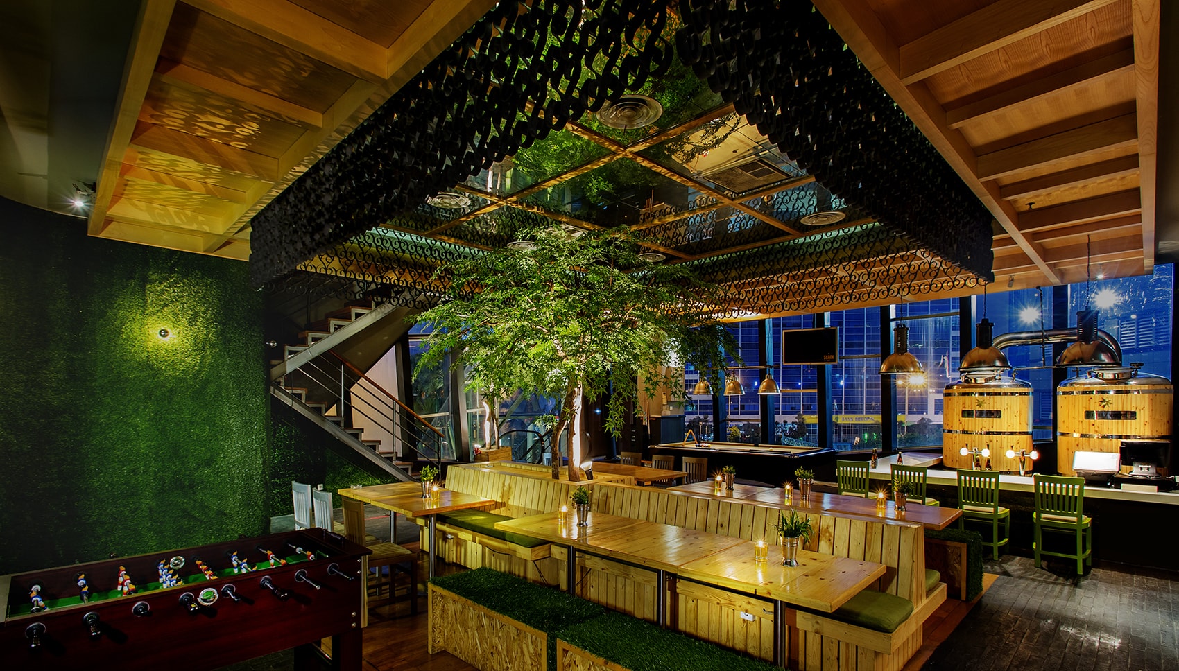 This German style bierhaus in the heart of Jakarta has become a hotspot in support of a local beer brewer Stark Beer. Bar area takes the spotlight as the hub of the activities happening around the Bierhaus. Distinct dining and lounging area in a fluid open space enhance the feel of an intimate gathering space despite the large area. Beer tanks and stainless steel gizmos transport customers into a beer brewery as they gulp quality local beer and bratwurst.