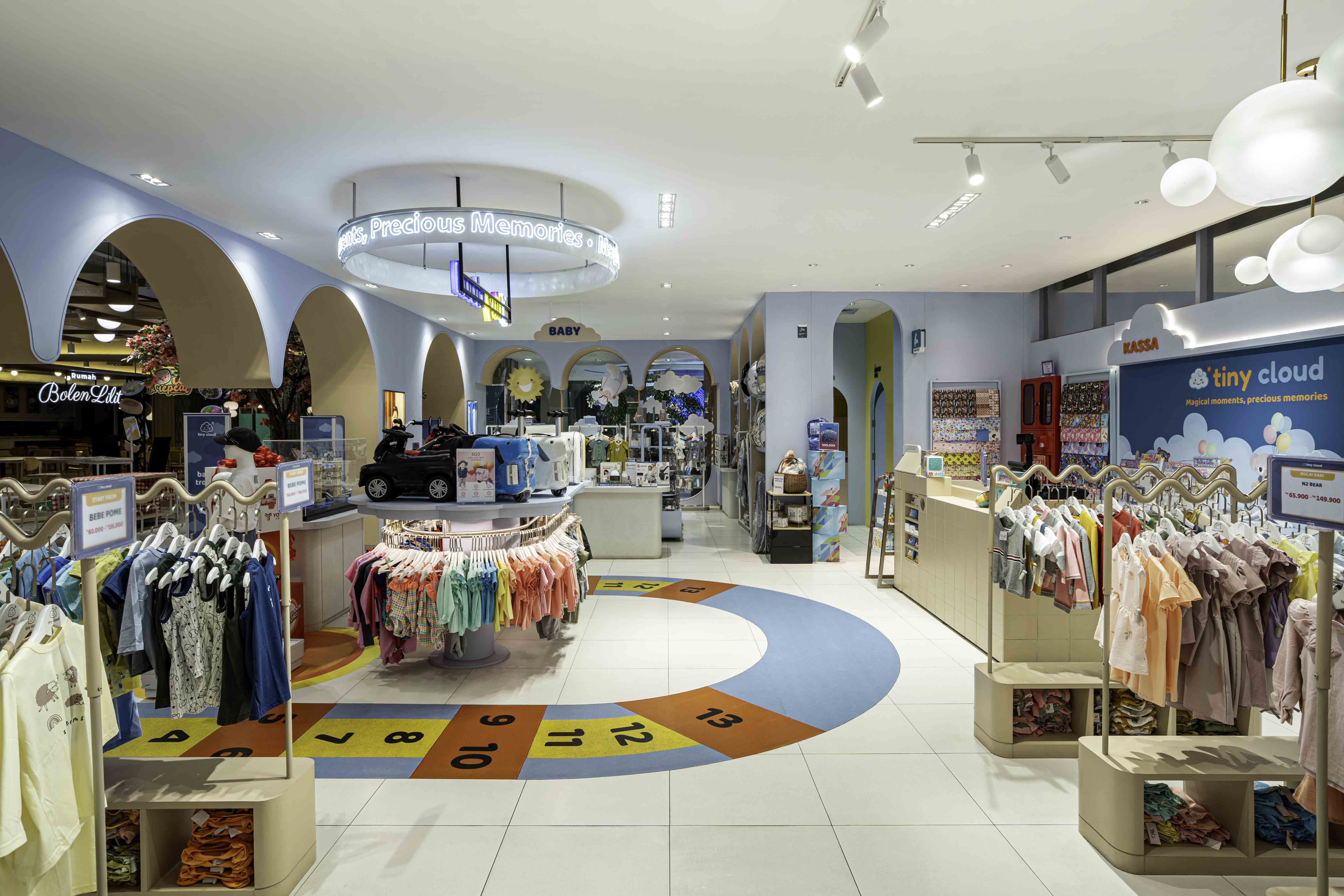 Tiny Clouds, a whimsical baby and kids shop in Kota Baru Parahyangan. Designed with a modern and bright aesthetic, Tiny Clouds is a playful haven where imagination comes to life. The shop is inspired by the process of growing and learning, with vibrant shapes and colors that engage young minds. Inside, you'll find delightful features like a Wheel of Fortune and mini slides that make every visit an adventure. Tihe store is designed to be a magical space where children can explore, shop, and have fun.