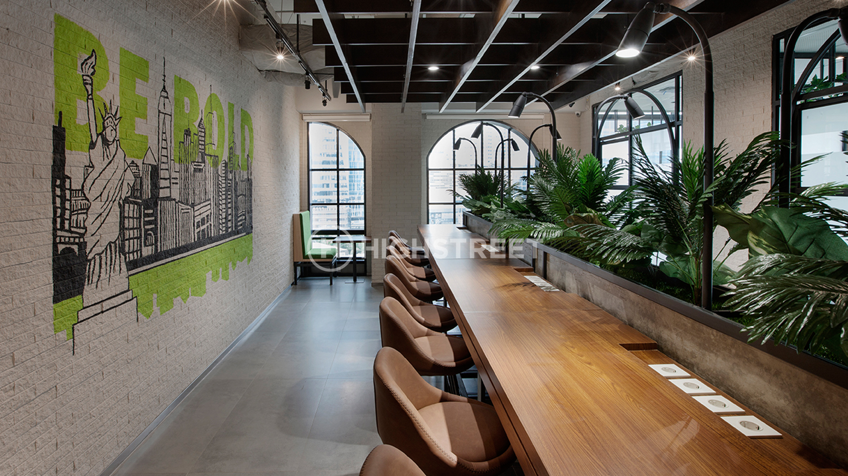 High Street Studio is inspired by the concept of the New York States of Mind, where the people who live there is never reluctant to interact with each others. It is making the city a very dynamic place. This thought was implemented into an atmosphere of an open-plan workspace. The large work desk, which is equipped with a small meeting spot located on the side. The industrial style presents the space’s style through the exposure of brick, steel, and wood panels. To match the tagline idea that says People, Place, Ideas, Uptown have a co-working interior design that is very different from the others!