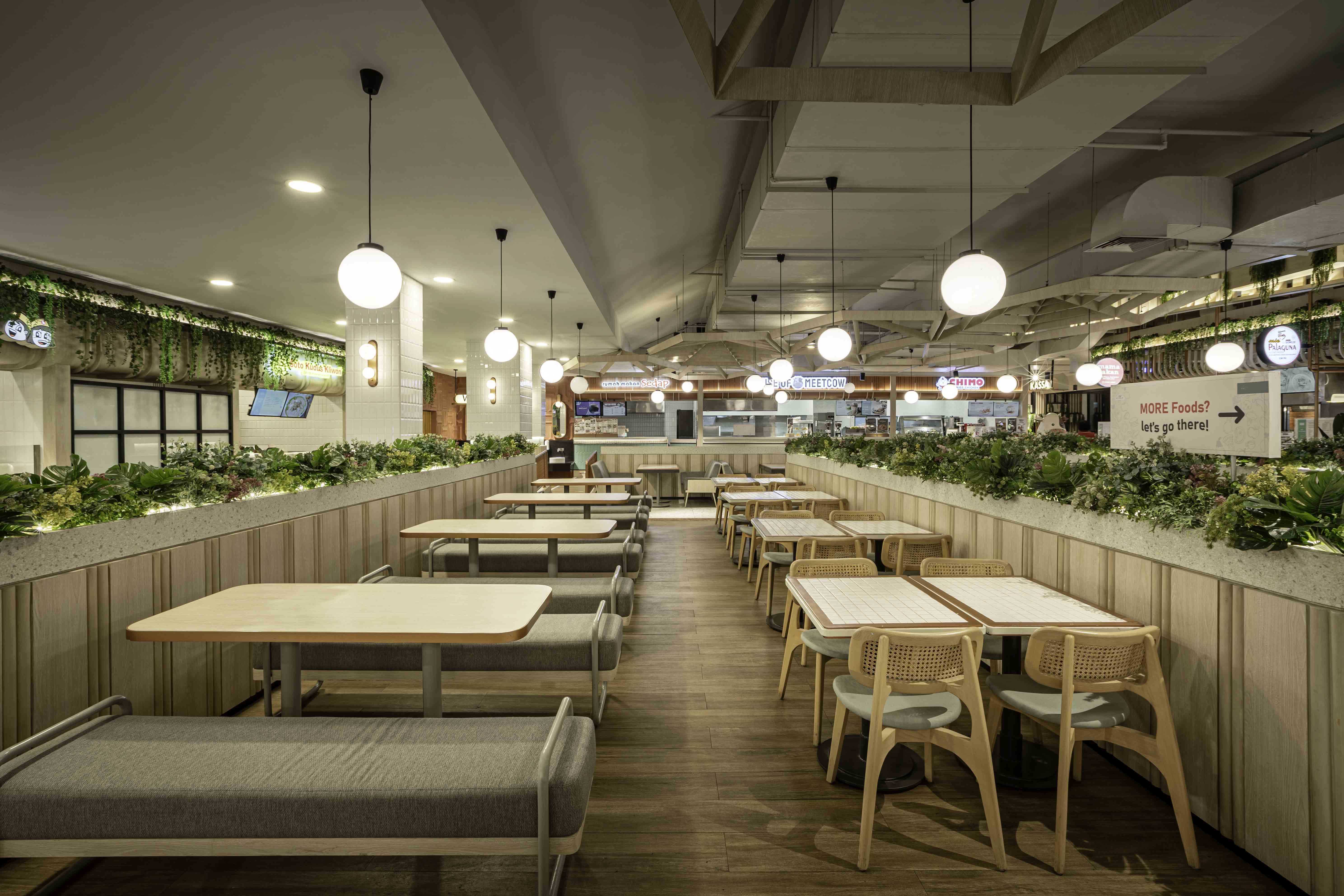 Foodlife, the premier dining destination within the Yogya Sunda 60 building in Bandung. Positioned on the 4th floor, just above the supermarket level, this foodcourt offers a distinctive culinary experience by seamlessly blending indoor and outdoor elements.