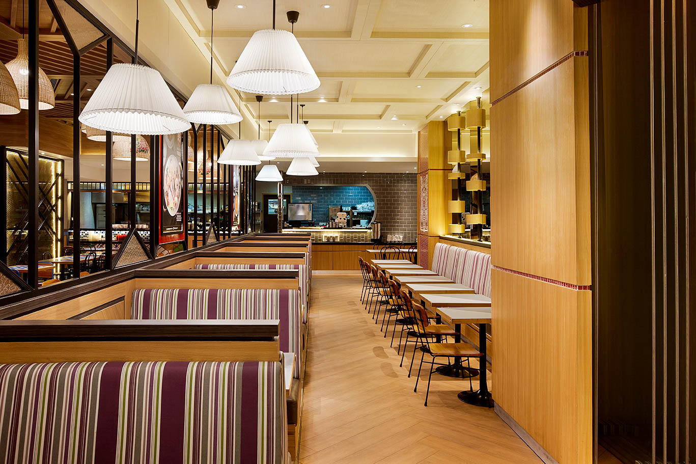 Jika menginginkan desain interior restoran yang lebih premium dan lebih rapih, model booths and benches merupakan pilihan tepat. Tempat duduk yang umumnya dibuat secara customized ini memiliki lapisan luar. Lapisan tersebut dapat dengan leluasa ditentukan sesuai konsep desain interior restoran secara keseluruhan. Soal ukuran, tentu kursi model ini memiliki jangkauan yang lebih luas. Apalagi model booth dapat dibuat menempel pada bidang dinding di sepanjang restoran.