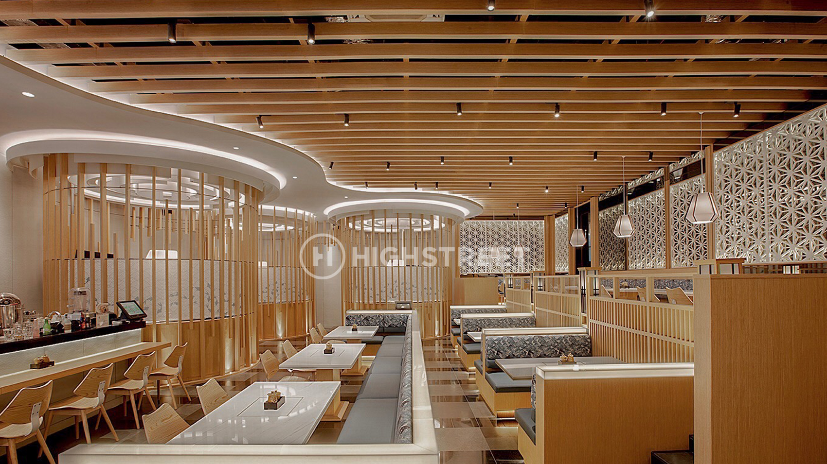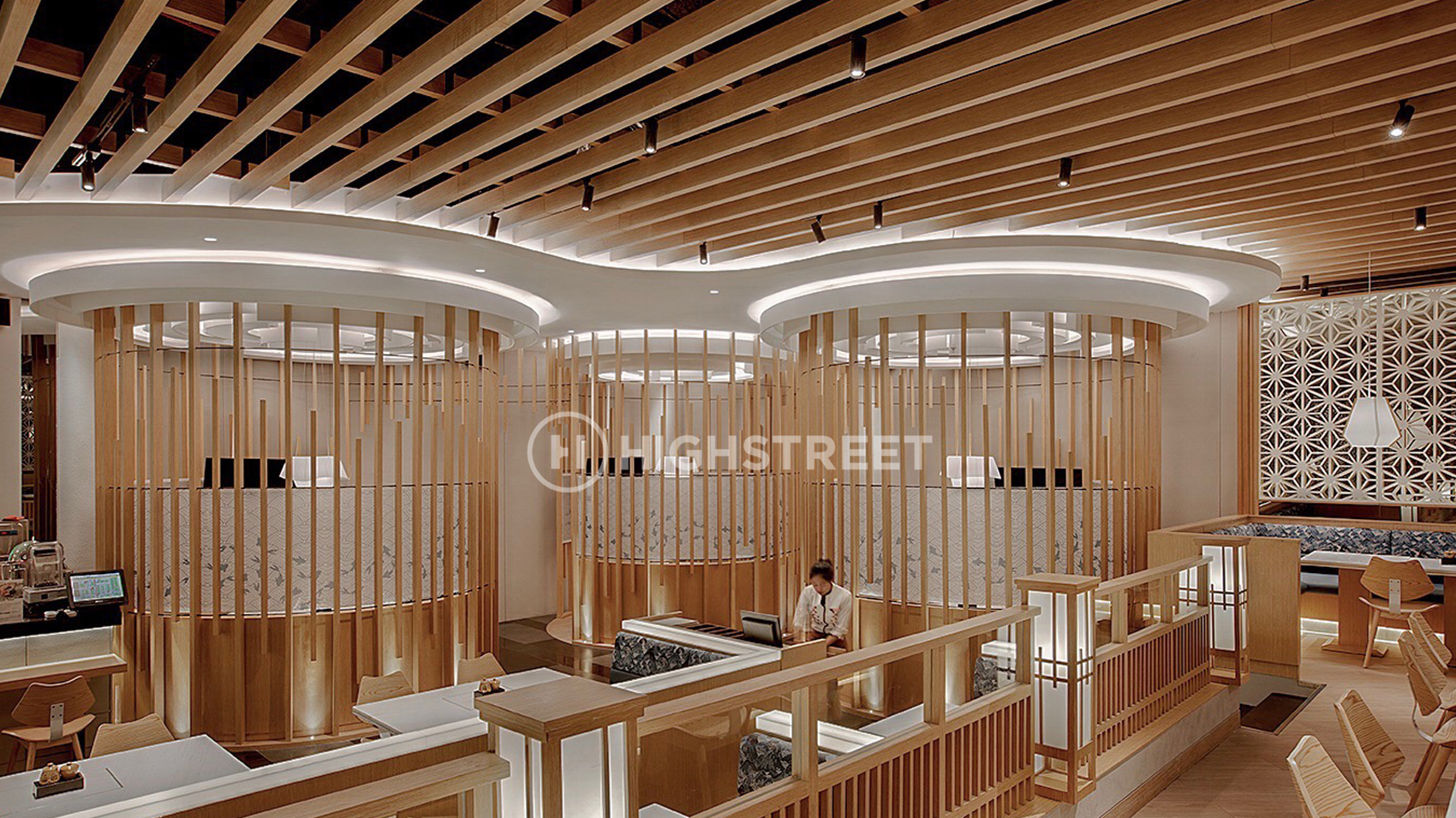 Mengkhususkan pada sajian menu otentik dari Okinawa, En Dining adalah premium Japanese restaurant yang hadir di pusat perbelanjaan Senayan City, Jakarta. Sebagai konsultan interior design, High Street Studio memberikan sentuhan desain restoran ala Jepang yang sangat kental. Mulai dari area penerimaan atau foyer, area makan, hingga area bar. Tersedia juga area makan yang seolah berada di dalam sangkar, untuk menawadahi kebutuhan berkumpul yang semi-private.