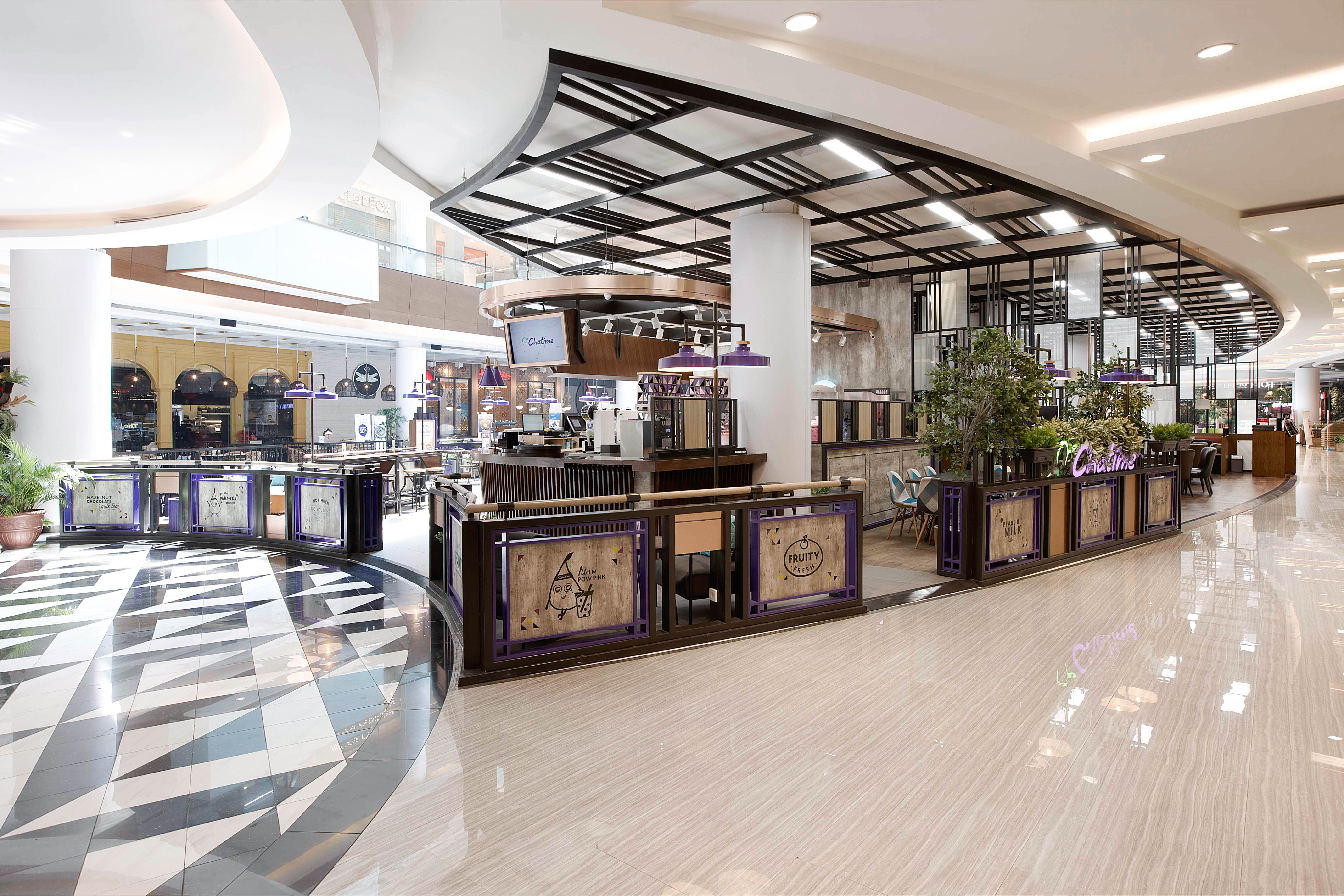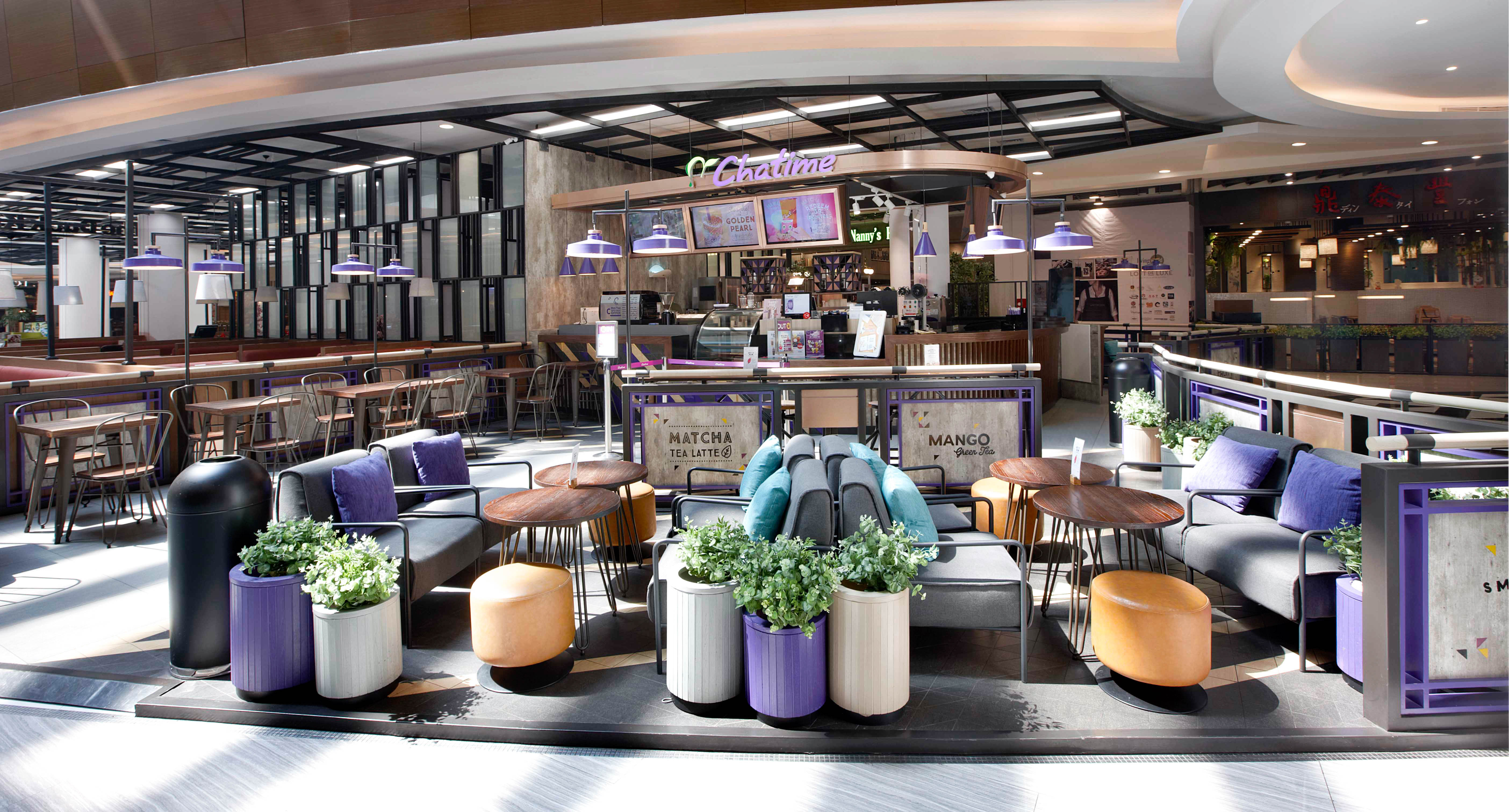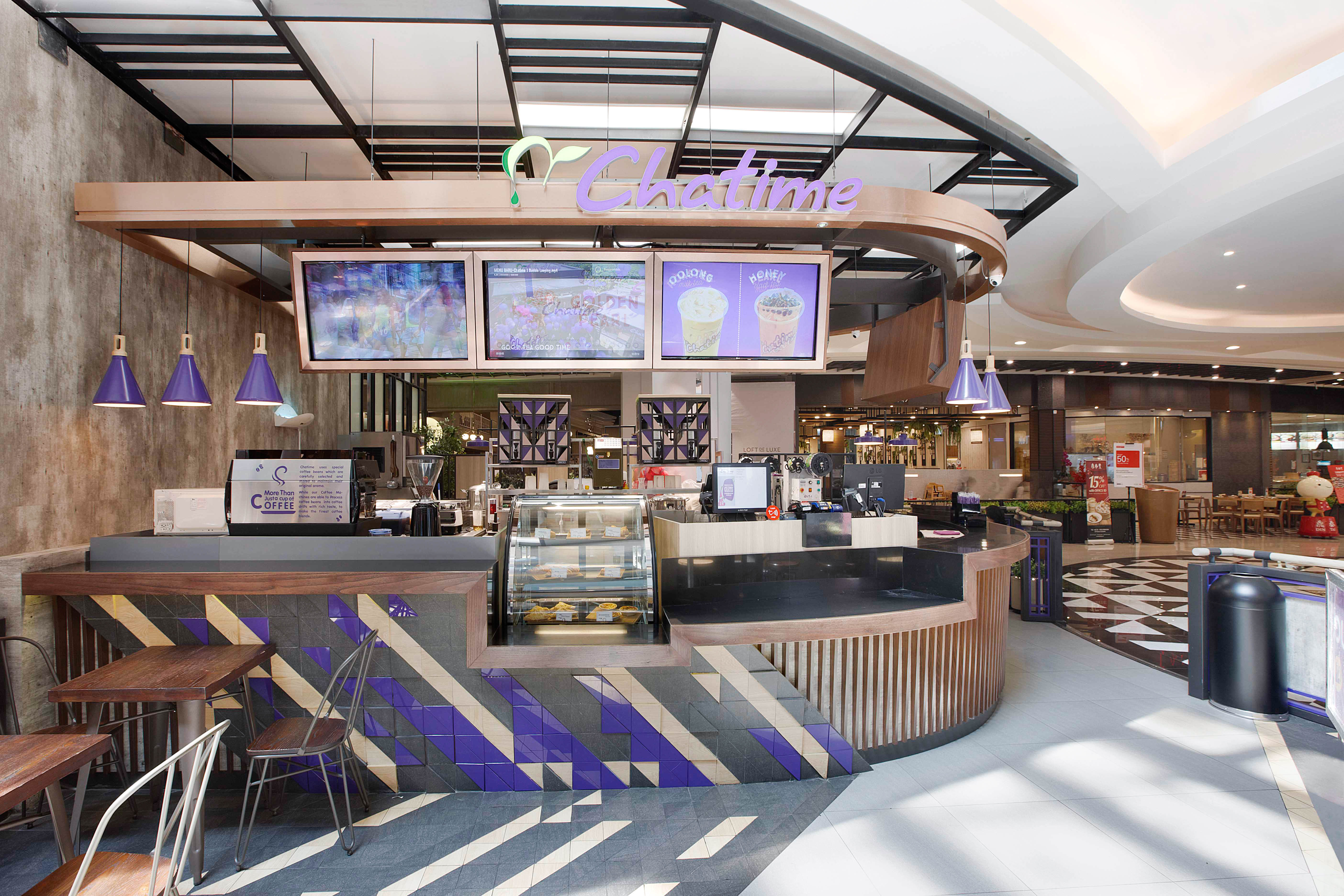 HighStreetStudio was comissioned as the Interior Consultant for Chatime new flagship concept at Living World, Alam Sutera, Tangerang. The new concept is an evolution from the previous grab and go concept. Its layout allows you to relax and spend your free time while enjoying your drinks. Combination of single seating sofa, round coffee table, and a bit of greenery touch to make it fit well with mall interior concept. The plants are packed into standing pots that make it a boundary between seating area.