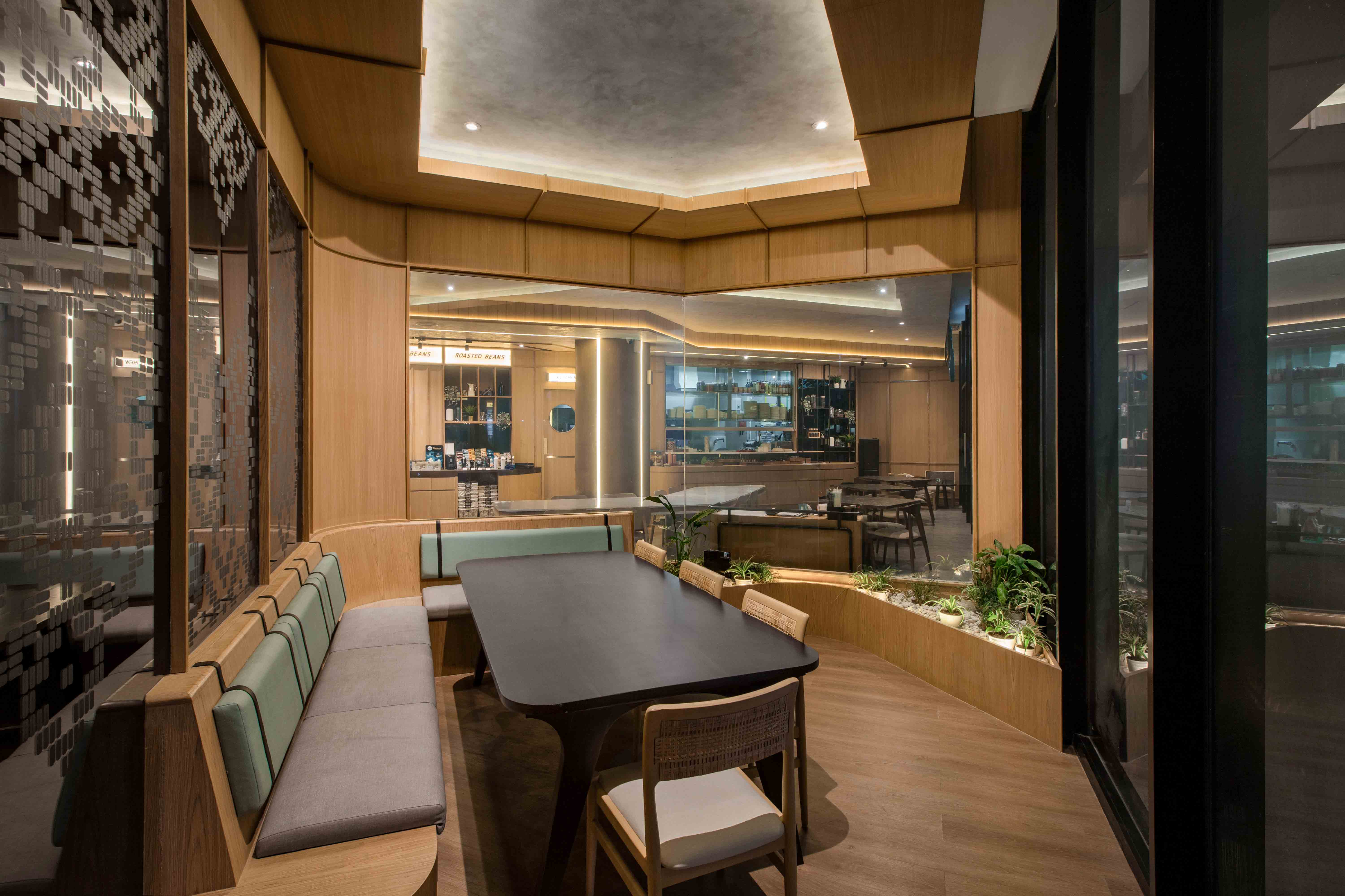 In the heart of Societe lies the private room, cocooned by smart glass. Privacy at your fingertips—opaque or transparent, as you desire. On the coffee counter, the robot coffee maker dances its precise routine, crafting perfection in every cup. It's a fusion of past and future, where coffee whispers secrets and woven patterns tell stories.