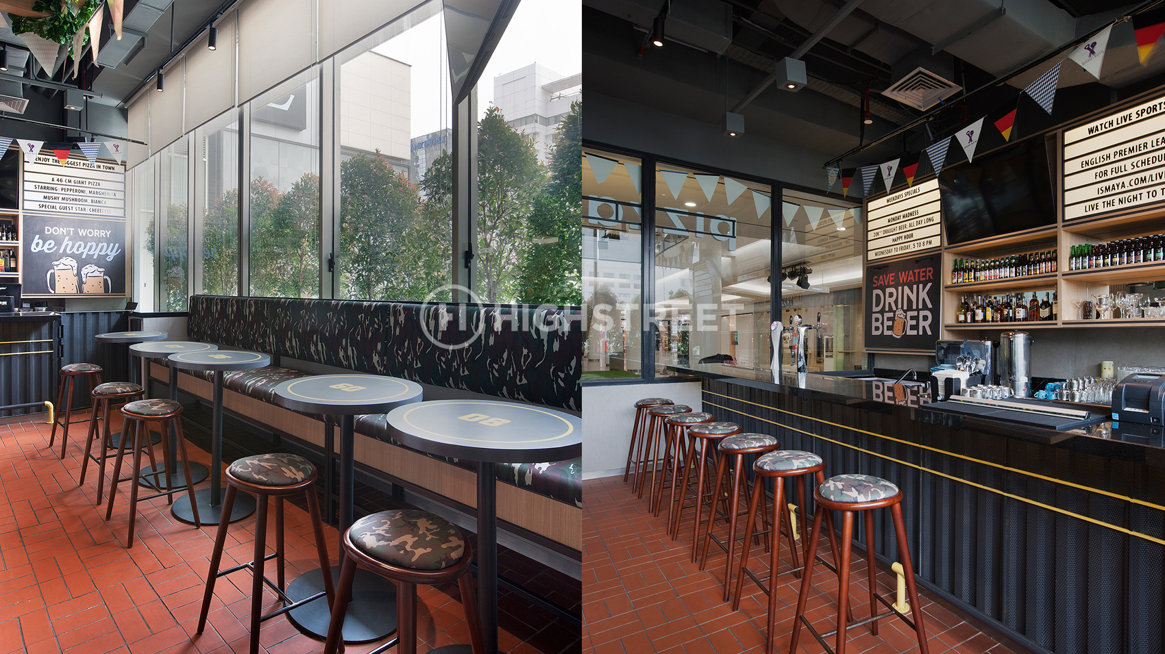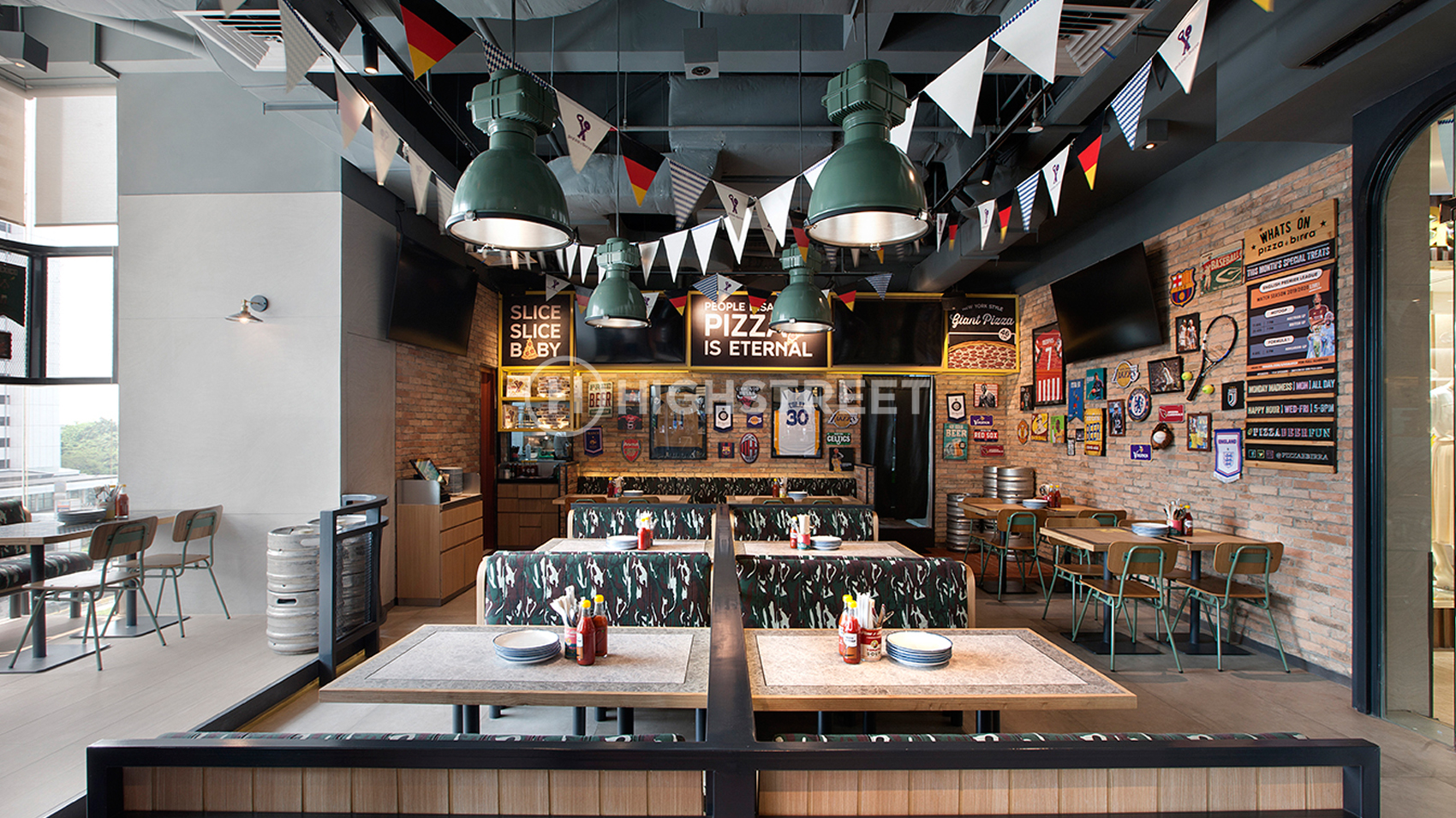 We chose a sports bar to serve as the design concept theme. Divide a special area for smoking and non-smoking areas. Our team is very concerned about the division of rooms in designing the interior of this Pizza E Birra Plaza by maximizing the space that will be used for band performances in holding live music and also the dining area. With strong graphics in the interior design that can represent the sports bar concept. To support the interior appearance that is fun and energetic, we use colours that represent the spirit of the Pizza E Birra Plaza Indonesia brand.