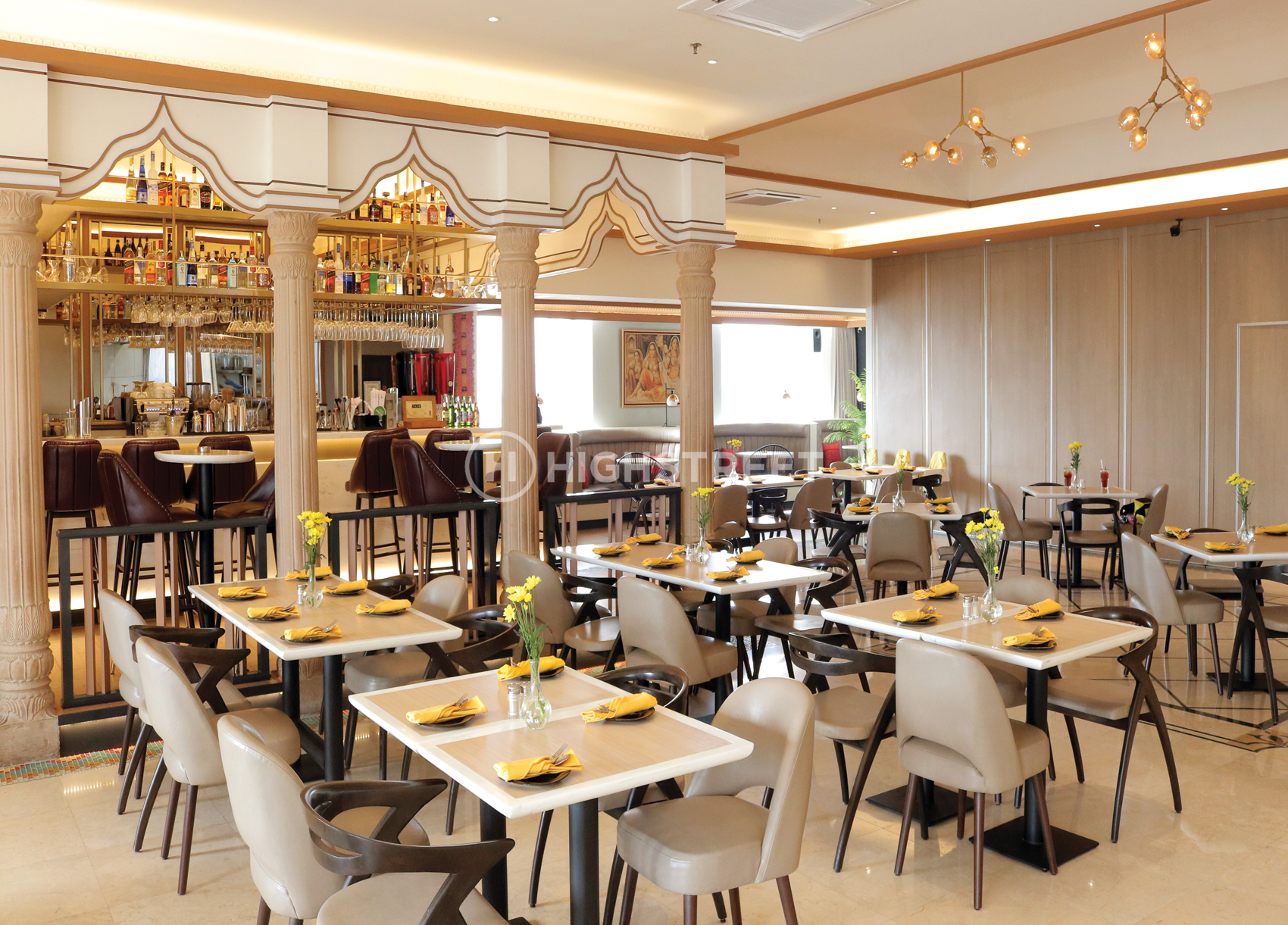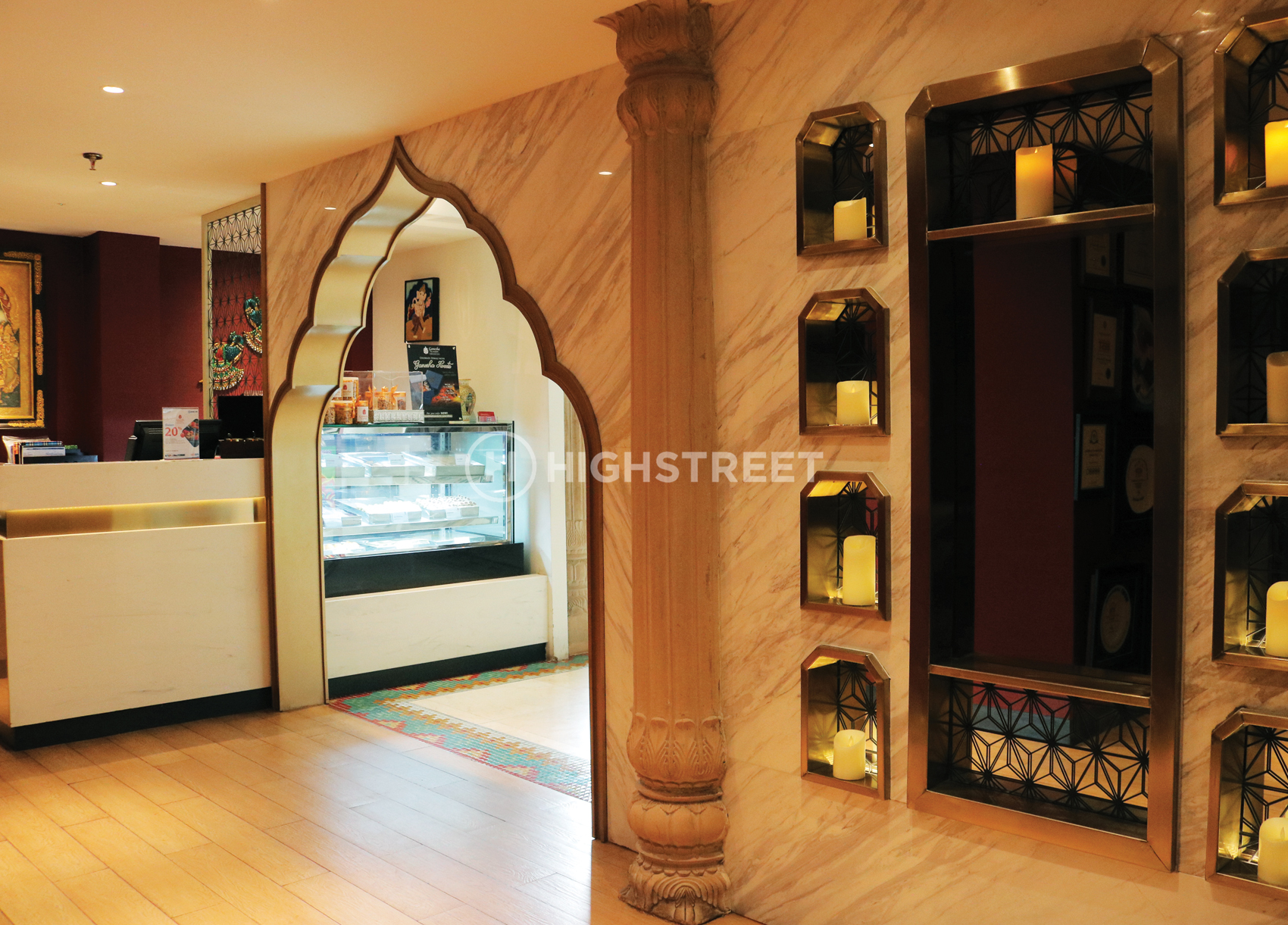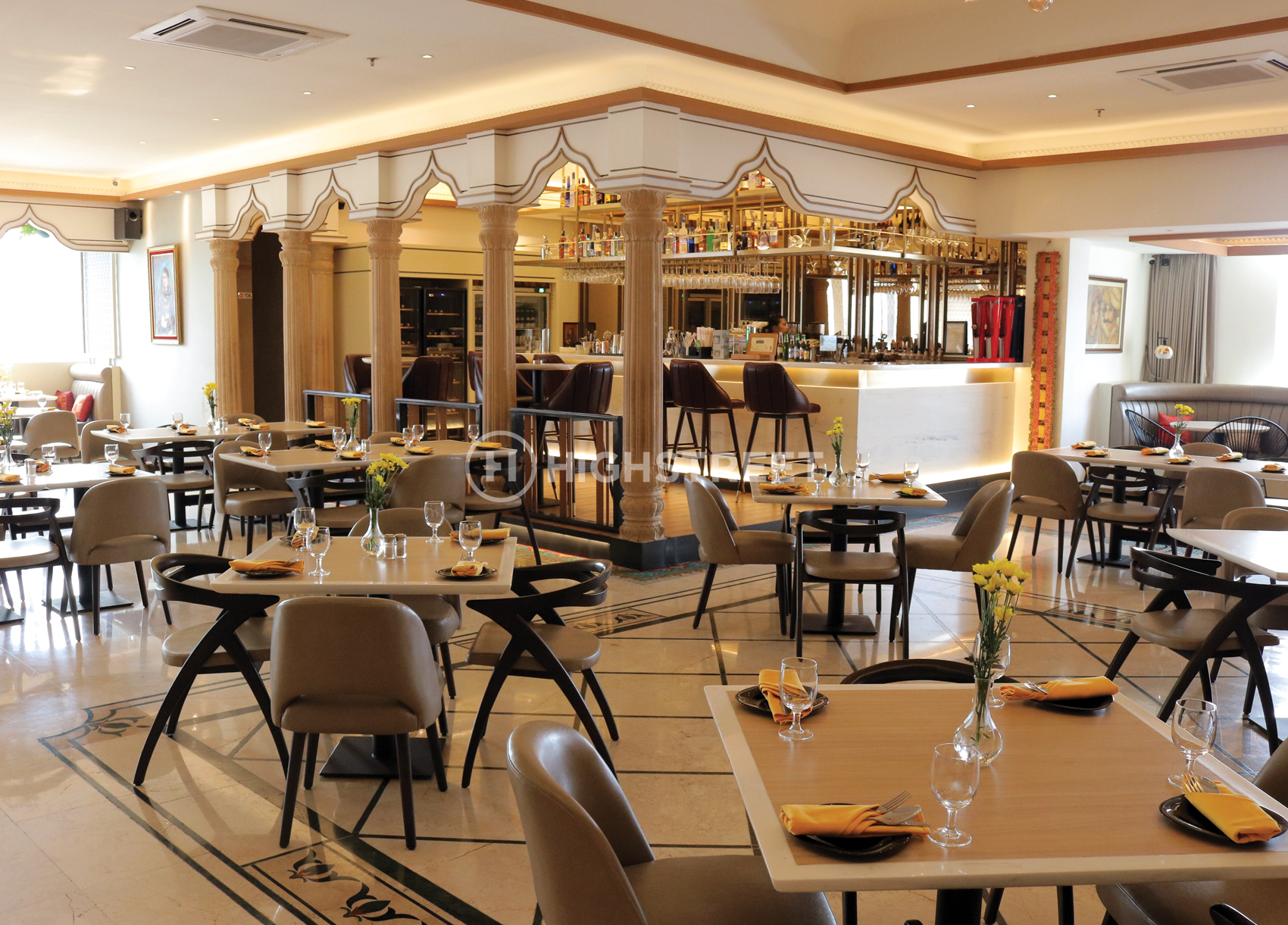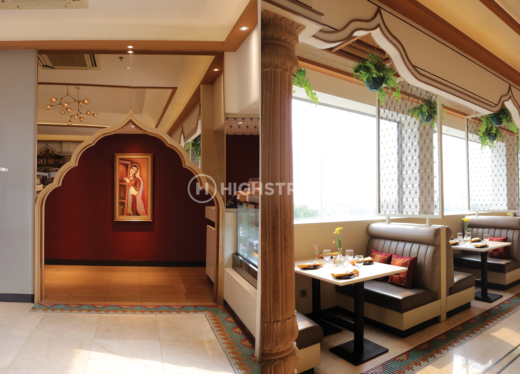 Sebagai profesional arsitektur konsultasi dan desain interior di Indonesia, High Street memahami kebutuhan Ganesha Ek Sanskriti. Untuk menyediakan fasilitas restoran India terbaik, semuanya harus dipertimbangkan untuk kepuasan pelanggan karena mereka juga ingin berbagi esensi india yang sebenarnya melalui seni, musik, dan interior desain restoran. Restoran yang terdiri dari ruang nyaman dan dirancang dengan kombinasi warna putih dan nuansa emas yang dikombinasikan dalam suasana cokelat alami ini membuat high street bertujuan untuk menciptakan ruang makan indoor dan outdoor yang lebih santai bagi para pelanggan.
